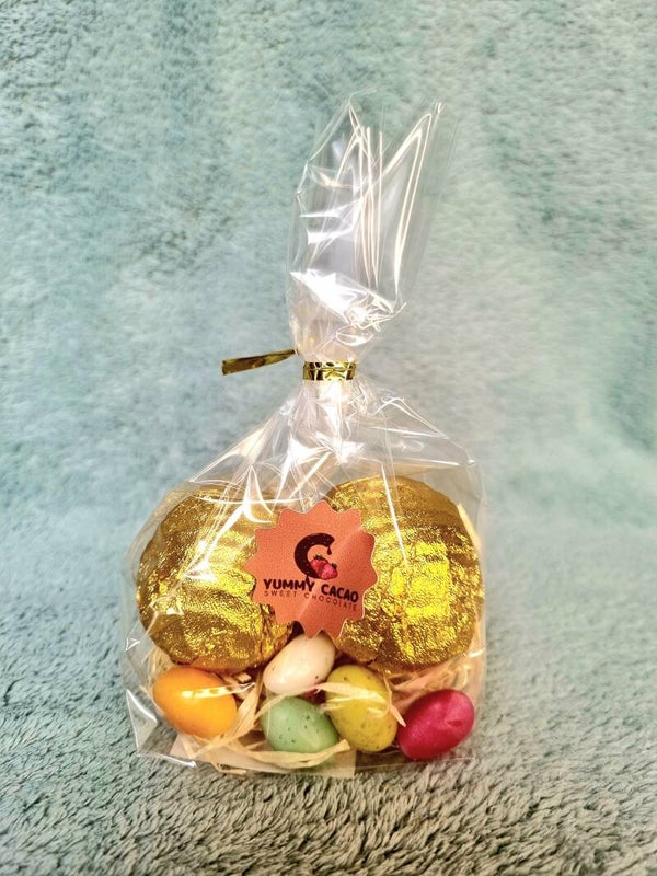 Présentés dans un élégant ballotin avec de petits œufs en sucre colorés, ces délices sont parfaits pour offrir ou pour se faire plaisir.